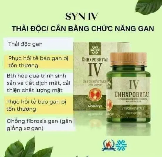 Thứ 4: Synchrovitals IV là sản phẩm giúp hỗ trợ bảo vệ, tăng cường chức năng gan, thải độc gan, phục hồi tế bào gan bị tổn thương, bình thường hóa quá trình sinh sản và tiết dịch mật, cải thiện chất lượng mật.
